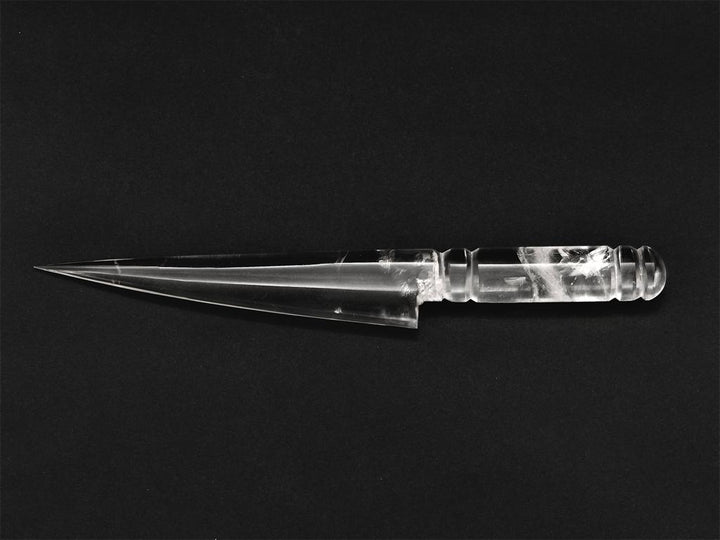 This crystal knife helps to links or cords cutting from the chakras. It is very important to cut all unwanted and unauthorised links or cords from our chakras to keep our chakras and aura clean and strong. The crystal knife helps to cut the cords from chakras or organs effectively compared to doing it with hands. This is a sample picture, the quality of the actual product will be similar to the picture. This Clear Quartz Cord cutting Knife is with few inclusions and 21 - 23 cm in length.